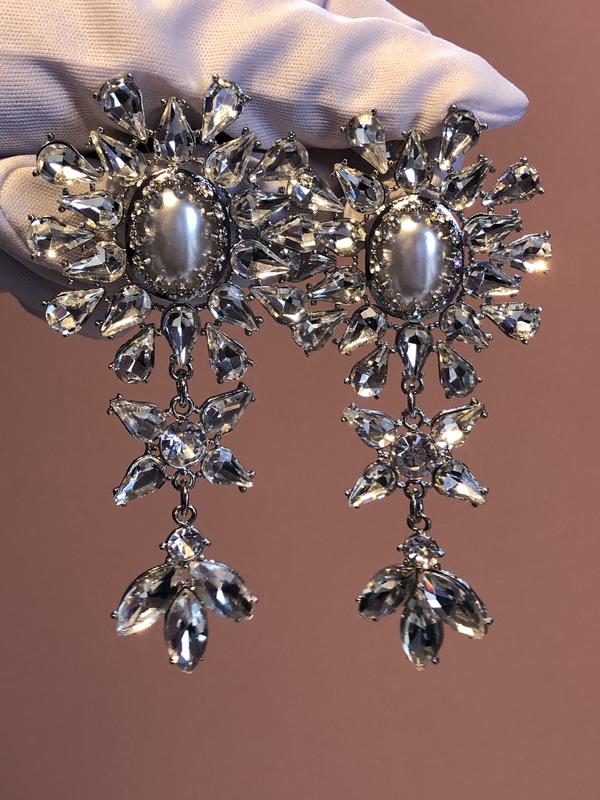 Серьги нарядные . Отлично дополнят как наряд невесты , так и вечерний наряд . Максимальная длина 4,5 см , максимальная ширина 4,5 см .