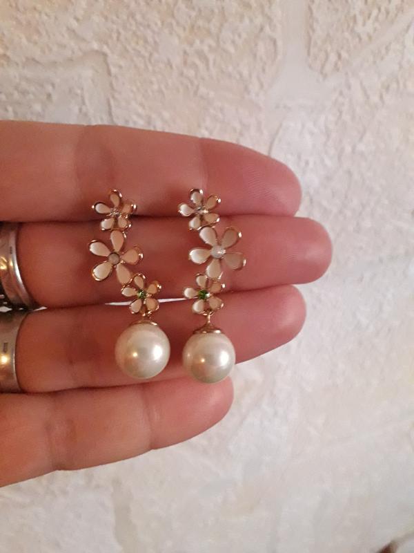 серьги нежные, жемчуг искуственный. Красиво смотрятся. Состояние ближе к идеальному.
