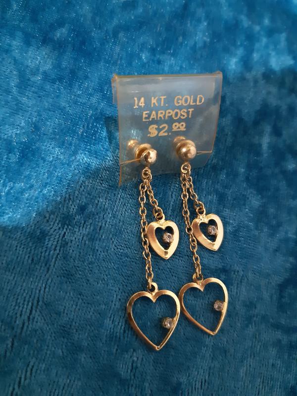 Серьги подвески сердечко,14k позолота американский винтаж
