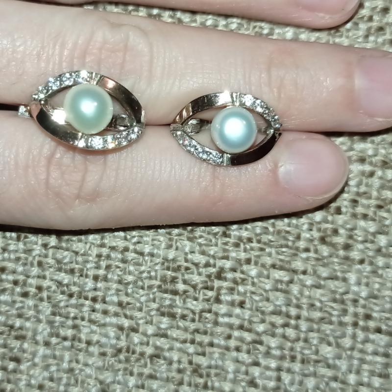 Серьги серебро+ позолота+ жемчуг. Английский замок. Одеты 1раз.