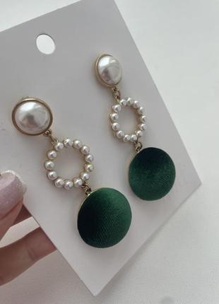 Роскошные длинные серьги. Жемчужные, изумрудные.