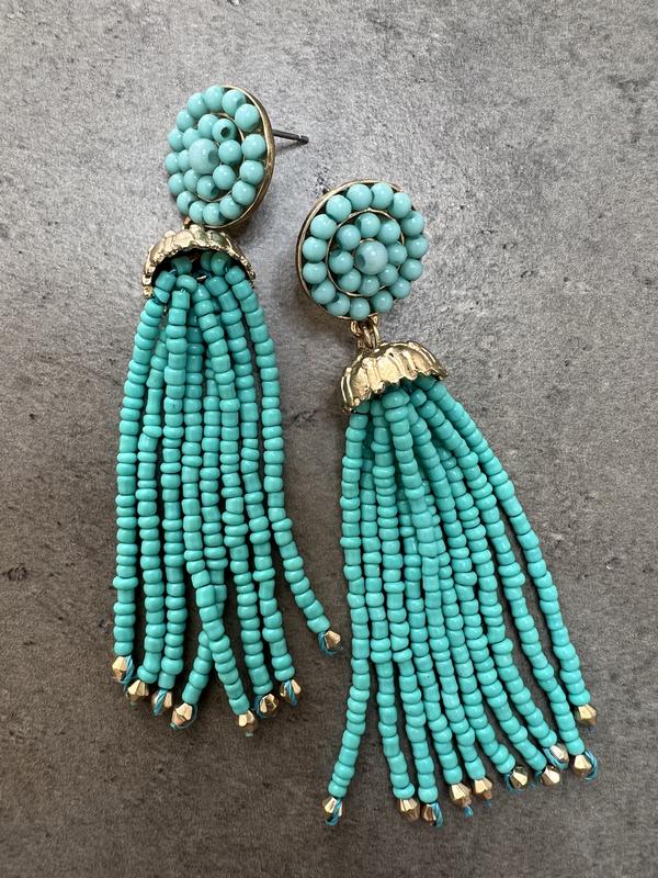 Сережки з бісеру блакитні із золотом 8,5см