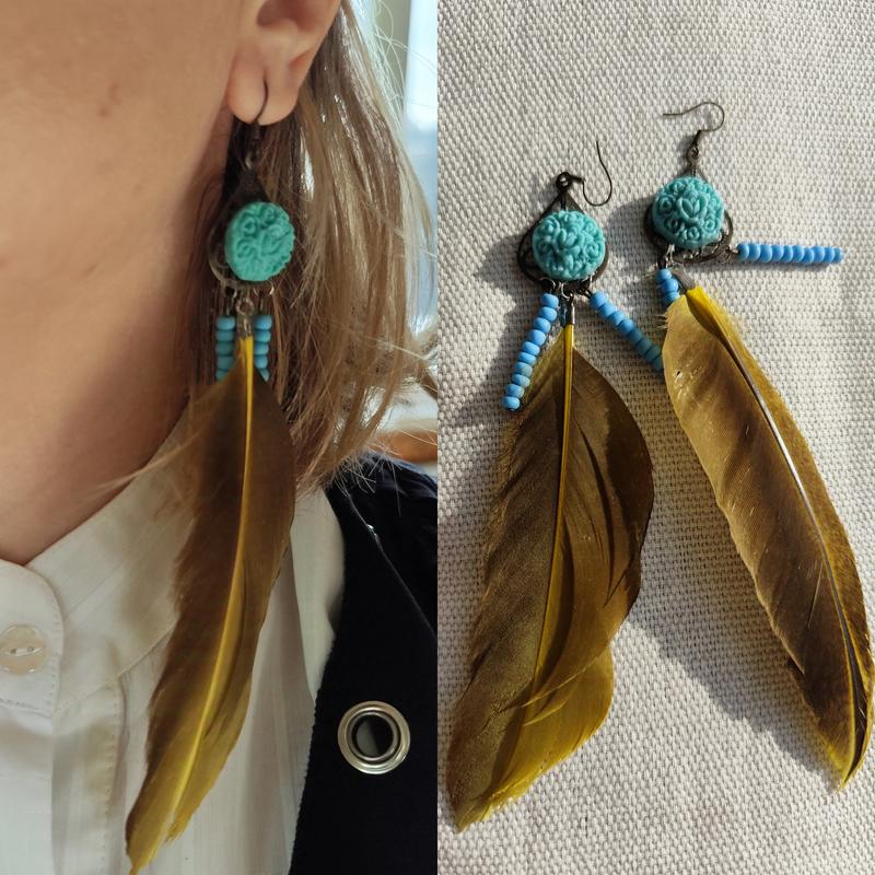Актуальні невисомі сережки пір'я ,індійські сережки,сережки в стилі бохо.