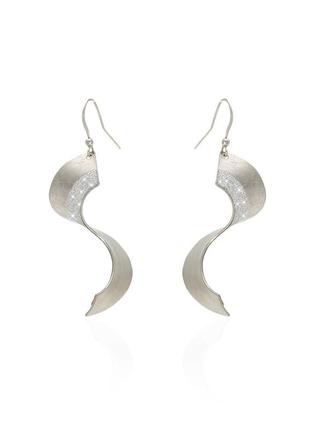 Серьги 7825 Уверенные в себе женщины, умеющие производить незабываемое впечатление, часто останавливают свой выбор на длинных серьгах, которые способны отлично подчеркнуть оригинальность любого образа. Аксессуар отличается оригинальной, волнистой формой, которая делает дизайн изделия невероятно стильным и необычным. Главной особенностью сережек является то, что половина их поверхности по вертикали усыпана мелкими блестками, красиво мерцающими при попадании солнечных лучей. Серьги выглядят стильно и благородно, помогают подчеркнуть женственность любой стилизации. Основа и застежка в серебристом оттенке будут идеально подчеркивать черные тона нарядов, создавая контраст цветов. Застежка-пусет обеспечивает бережную и надежную фиксацию сережек в мочках ушей. Модель отлично смотрится со строгими костюмами, белоснежными блузами и туфлями на шпильках. В таком наряде можно смело посещать офис или деловые встречи. На званых вечерах серьги в серебристом оттенке будут идеально гармонировать с платьями с открытым декольте. Элегантные украшения придутся по душе даже самым требовательным дамам и смогут поднять настроение даже в самый пасмурный день.
