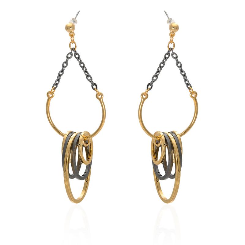 Серьги 7884 Серьги-бижутерия — очень популярное женское украшение, позволяющее легко создавать яркий и оригинальный облик. Сережки эффектно подчеркивают красоту и стиль своей хозяйки, но при этом стоят дешевле, чем драгоценности. Оригинальный и прекрасный атрибут станет отличным дополнением к украшениям для любой девушки. Серьги с подвесным элементом в виде колечек, разных по цвету и размеру, выглядят красиво и оригинально. Они гарантированно привлекут внимание окружающих и сделают акцент на внешности хозяйки, придав ей очарования. Застежка у изделия надежная и долговечная. Она не причинит неудобств и гарантирует, что серьги не потеряются во время прогулки или танца. Благодаря легкому весу аксессуара не вызовет неприятных ощущений даже после длительной эксплуатации. Сочетание серого и золотистого выглядит оригинально и привлекательно. Атрибуты приятно сияют на ярком свету и отлично гармонируют с различными темными нарядами. Такие аксессуары особенно хорошо сочетаются с вечерними костюмами и платьями. Также они подойдут для походов в театр, кино, на вечеринку или вечернее свидание.