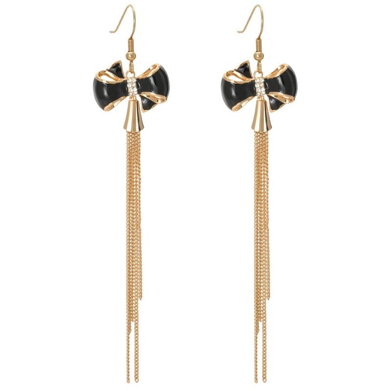 Серьги 962504 Серьги-подвески — стильное и оригинальное украшение. Аксессуар подчеркивает женственность, элегантность и утонченность. С ним любая представительница прекрасного пола обретет уверенность в своей красоте и совершенстве. Благодаря характерной вертикальной конструкции, изделие визуально корректирует черты лица, визуально уменьшая нос и подбородок. Такая бижутерия должна быть в косметичке каждой девушки, чтобы выглядеть на все сто, и ловить на себе восторженные взгляды окружающих. Сережки изготовлены из надежного металла, который не тускнеет, не ржавеет и не окисляется. Аксессуар оснащен замком-швензой. Поэтому, все манипуляции проходят быстро, комфортно и легко. Чтобы снять или надеть изделие, понадобиться несколько секунд. Основная часть сережки выполнена в форме аккуратного милого бантика, декорированного серебристыми стразами. Продолжение конструкции — цепочки с мелкими звеньями. Дизайнерская композиция смотрится сдержанно, но в тоже время выразительно и интересно. Украшение очень легкое. Его можно носить несколько часов подряд, не испытывая дискомфорта. Главные правила ухода — чистота и хранение в сухом месте.