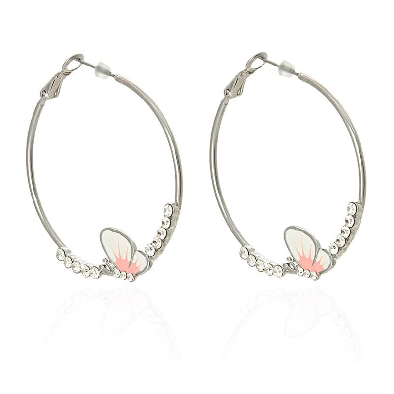 Серьги 960603 Красивые и необычные сережки выполнены в виде колец и украшены фигуркой бабочки. Они дополнят множество образов в таких стилях: вечернем, повседневном, романтическом и классическом. Украшение подойдет каждой девушке, независимо от ее возраста, цвета волос и формы лица. Оно отлично сочетается с деловыми костюмами, простыми джинсами, вечерними пышными платьями и легкими блузами. Сережки добавляют луку особого шарма и лоска, подчеркивают красоту и нежность кожи. Дизайн данной модели лаконичный, но при этом интересный. Она дополнена белыми стразами, которые завораживающе мерцают и переливаются в лучах солнца. Для более широкого выбора основа изделия выполнена в двух цветах: золотистом и серебристом. Удобная и качественная застежка надежно фиксирует и удерживает аксессуар на протяжении всего дня. Товарная единица изготовлена из прочного и высококачественного металла, который отличается долгим сроком службы и устойчивостью к различным повреждениям. Материал не тускнеет, не окисляется при контакте с водой, при этом является полностью безопасным в эксплуатации. Изделие легкое, не оттягивает мочку уха и не повреждает место прокола. Атрибутом практически невозможно травмироваться. Аксессуар не сковывает и не ограничивает движения, не цепляется за одежду. Его можно носить с утра до вечера, не ощущая малейшего дискомфорта и боли. Уход очень простой и быстрый.