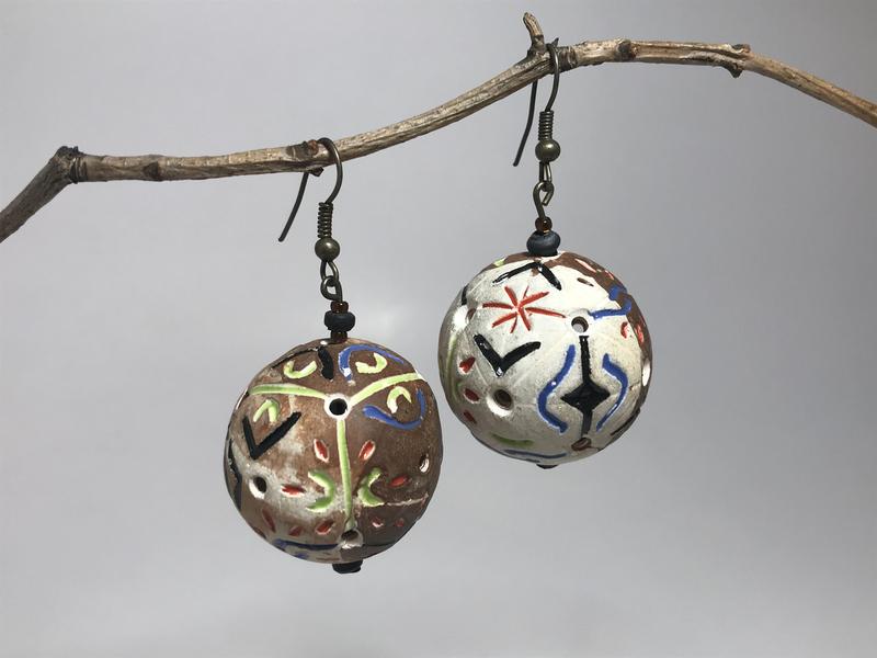 Серьги керамические, серьги расписные "шарики", серьги ручной работы, украшения из керамик...