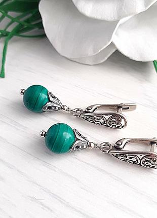 Сережки з малахітом