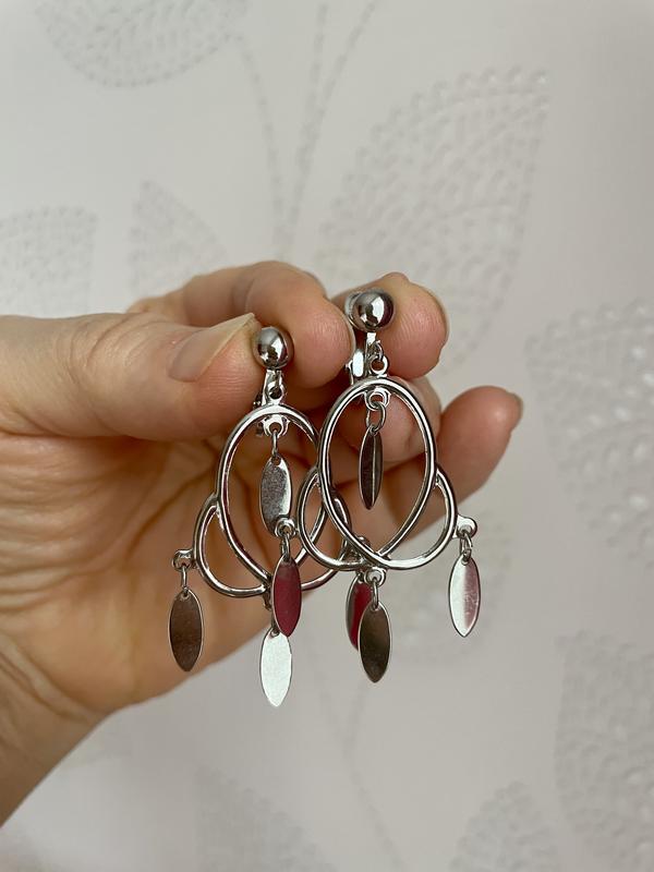 Оригинальные легкие серьги-клипсы в серебристом тоне. Стан - идеальный. Размер: 6 х 3 см