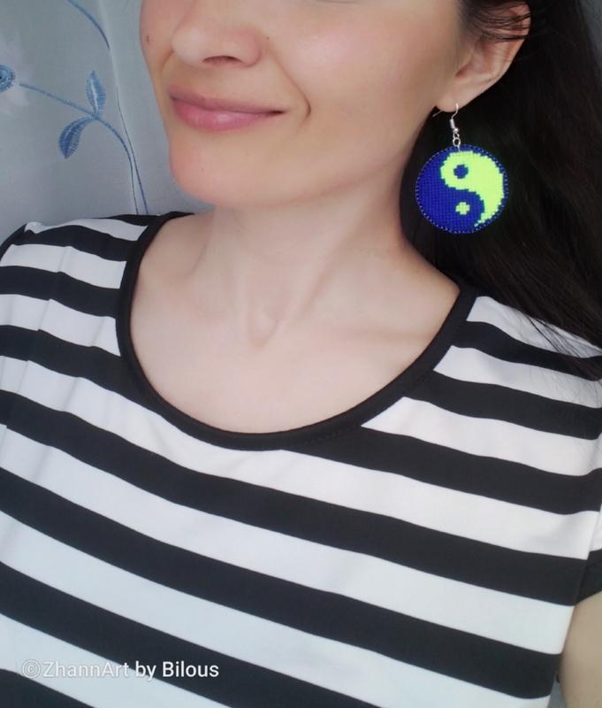 Ручная работа. Серьги изготовлены из канвы с ручной вышивкой нитями мулине. Обратная сторона обшита натуральной кожей. Серьги прочные, не гнутся. Толщина серьги – 2 мм. Диаметр - 4.2 см Длина серьг - 6.2 см. Возможен повтор в любом другом цвете и нужном размере.