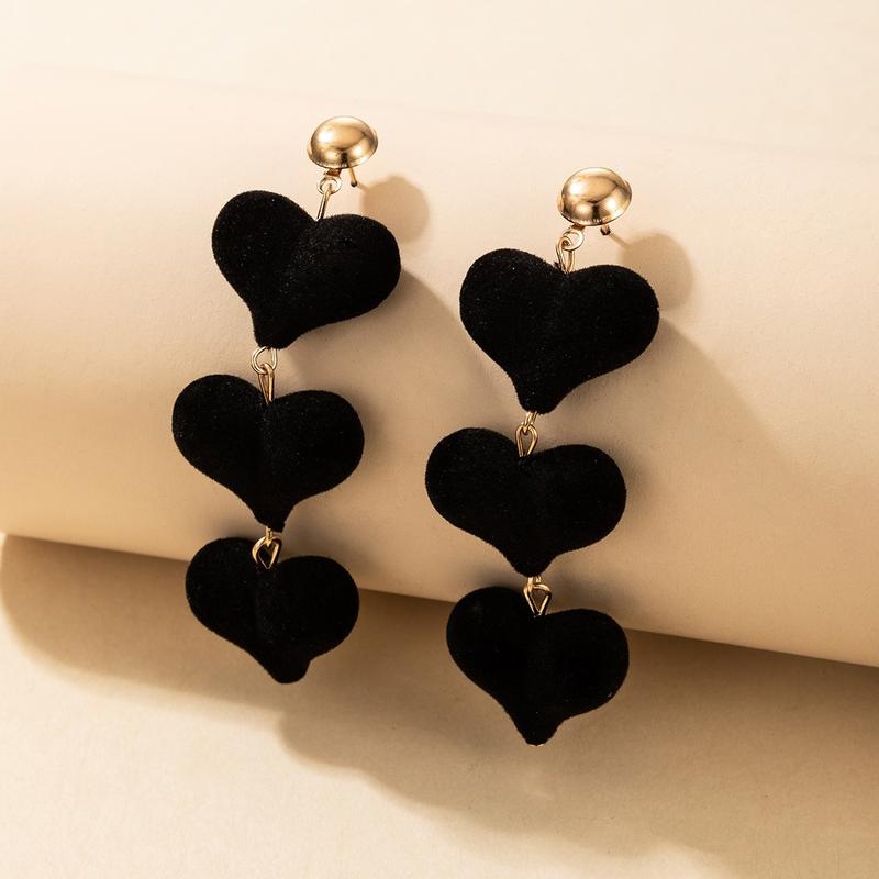 Золотистые серьги с бархатными черными сердечками нольделяттричетырешим-симтришнул восемью