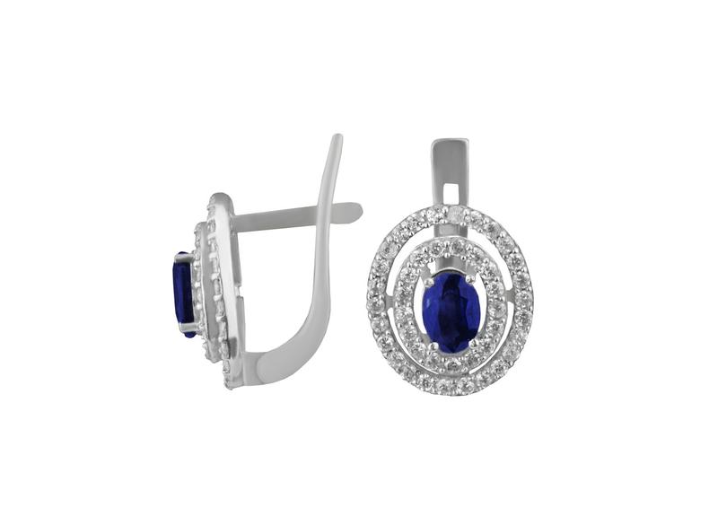 Серьги серебряные с натуральным сапфиром Аурелио Серебро 925 проба. Вес 3.31 гр. Длина 15 мм, ширина 12 мм. Вставки: овал 4*6 мм (2 шт), круг 1 мм (86 шт) 2056/9р сапфир