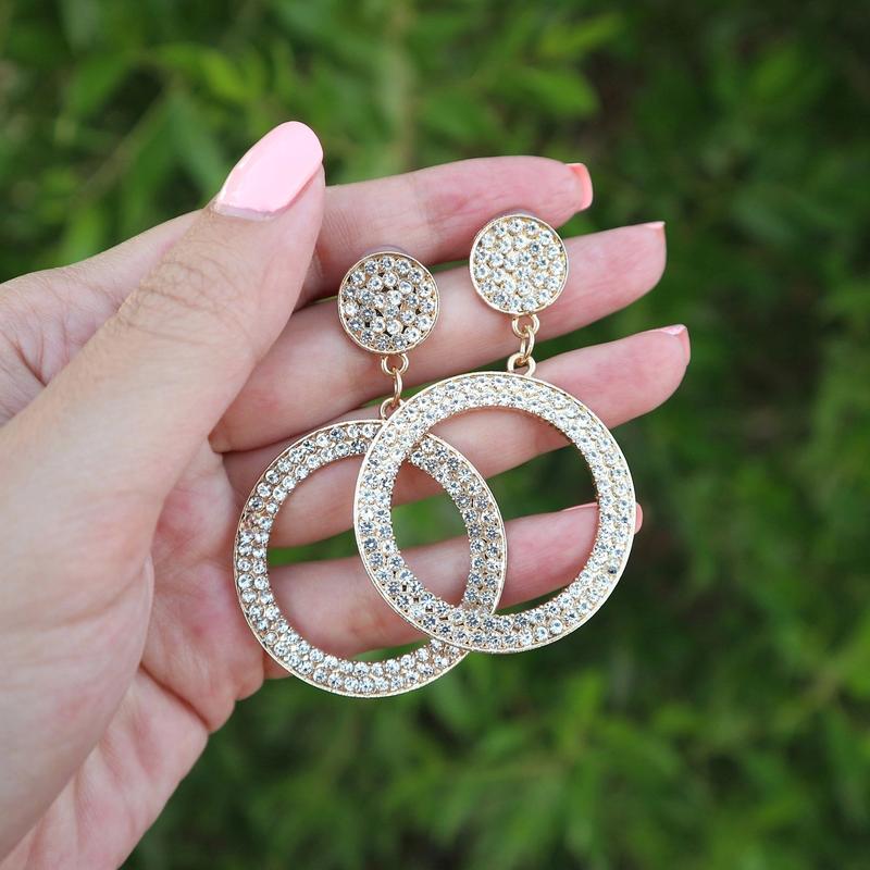 Украшены блестящими камнями. Диаметр кольца 4см. Общая длина 6 см.