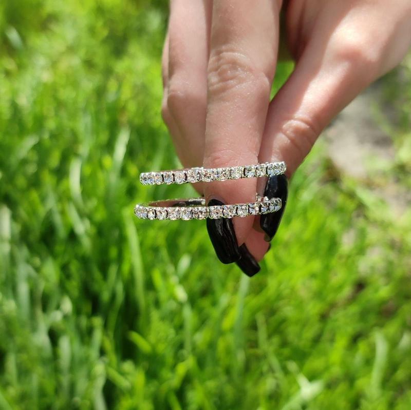Женские серьги в форме колец - "Конго в серебре с дорожкой цирконов" из бижутерного сплава, диаметром 3,5 сантиметров - классический подарок девушке. Дополнительно комплектуем подарочной упаковкой Эти серьги в виде колец изготовлены из качественного бижутерного сплава, который идеально имитирует серебро. Это отличный выбор для тех, кто хочет выглядеть стильно и элегантно, не переплачивая за серебро. Серьги украшены россыпью ювелирных неокрашенных страз, которые привлекают особое внимание и добавляют блеск, особенно при ярком освещении. Такой дизайн подойдет как для повседневного использования, так и для особых случаев, когда вы хотите выглядеть особенно элегантно. Дополнительно следует отметить, что полированная поверхность металла этих сережек имеет оттенок светлого серебра, который придает им еще большую элегантность и блеск. Размеры сережек подходят большинству девушек и женщин; имеют удобное и надежное крепление - застежку, которое позволяет легко и быстро надевать и снимать их. Кроме того, они легкие и не вызывают дискомфорта даже при длительном ношении. Выберите эти прекрасные серьги-кольца, чтобы подчеркнуть свою индивидуальность и добавить яркий акцент в свой образ! Вот наши авторские фото и видео, снятые с реальных моделей и украшений: ### Наши авторские фото и видео охраняются законом! Достоинства данного украшения Стильная классическая модель Альтернатива дорогим украшениям из серебра, золота и бриллиантов Подходит и для праздничной обстановки, и для повседневного использования Уход за бижутерией Изделия будут долгое время радовать своих обладателей при правильном уходе и аккуратном обращении. Для этого необходимо: - беречь от повышенных механических нагрузок (трения и давления, ударов, царапин и тому подобное) - избегать контакта с агрессивными химическими веществами, особенно с хлором и серой, ртутью и йодом - снимать украшения перед мытьем посуды, уборкой с применением бытовой химии, а также перед нанесением лака на волосы и крема на кожу - снимать украшения перед занятием спортом, принятием солнечных ванн, водных процедур и перед сном. Для очистки от загрязнений: промойте изделие в воде с жидким мылом или шампунем (можно использовать мягкую зубную щетку), потом - в чистой воде; вытрите мягкой сухой тряпочкой и тщательно просушите. Оформление украшения в базовой комплектации наглядно показано на главном фото на сайте магазина. Размеры небольшие и подходят большинству девушек, женщин (измерения сделаны в ручную и не претендуют на высокую точность): - диаметр 35 миллиметров - толщина 4 миллиметра ### Вы можете выбрать другой вариант комплектации украшений с помощью дополнительных фото на сайте. Пожалуйста, уточните цену и наличие выбранных вариантов перед оформлением заказа. Кроме того, дополнительно мы можем подобрать для Вас подарочную упаковку (ссылка активная) с учетом ваших пожеланий! Самый популярный вариант упаковки - в подарочной коробочке, которую Вы можете увидеть на следующем нашем авторском фото: От такого подарка девушка будет в восторге Оплаченные заказы отправляем из нашего реального магазина в Черкассах. Экспресс - доставка Новой почтой и Укрпочтой по всей Украине! Заказ легко сделать за пару минут, выберите удобный для Вас вариант - оформите заказ на сайте, заполнив простую форму заявки - 