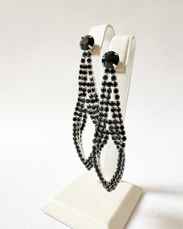 Длинные серьги пусеты, серебряный тон, все уставные черными камнями, идеальное состояние, без маркировки