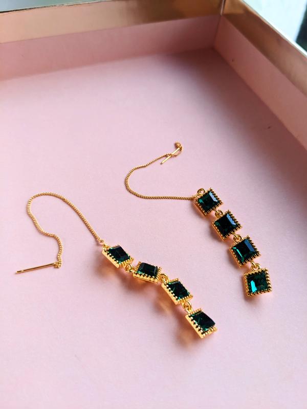 Роскошные зеленые хрустальные квадратные серьги с кисточками.✨