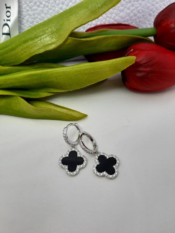 Очень красивые и модные серьги из медицинского сплава. Хорошо носятся не темнеют, не обволакивает, не вызывает аллергии. Размер: 30мм.Камни: фианит. .Вставки черная эмаль
