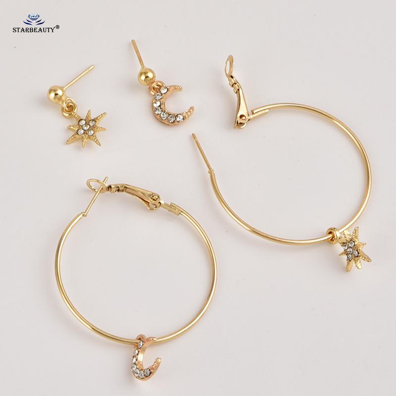 Очень красивый набор сережек луна-звезда в кристаллах, состоит из четырёх серёжек, которые подходят как для проколов, так и для хрящиков. серьги кольца с подвесками в виде луны и звезды в кристаллах и серьги гвоздики в аналогичном дизайне. Их можно носить как все вместе, так и по отдельности, на одном, или на двух ушках-важна только ваша фантазия. Состав: бижутерный сплав. Пересылаю укр почтой и новой почтой