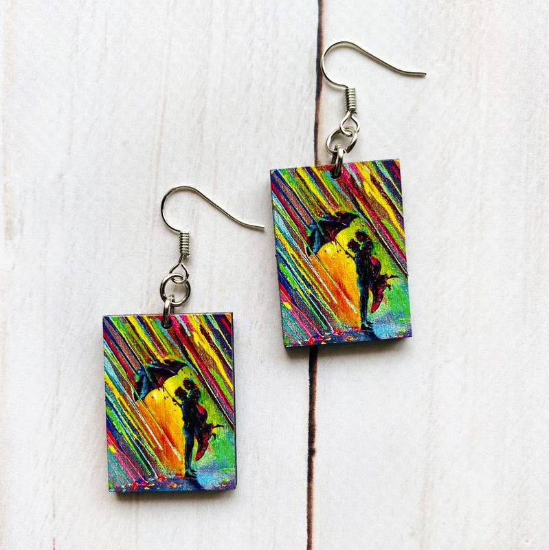 Серьги деревянные. пара под зонтиком (принт 2.5)