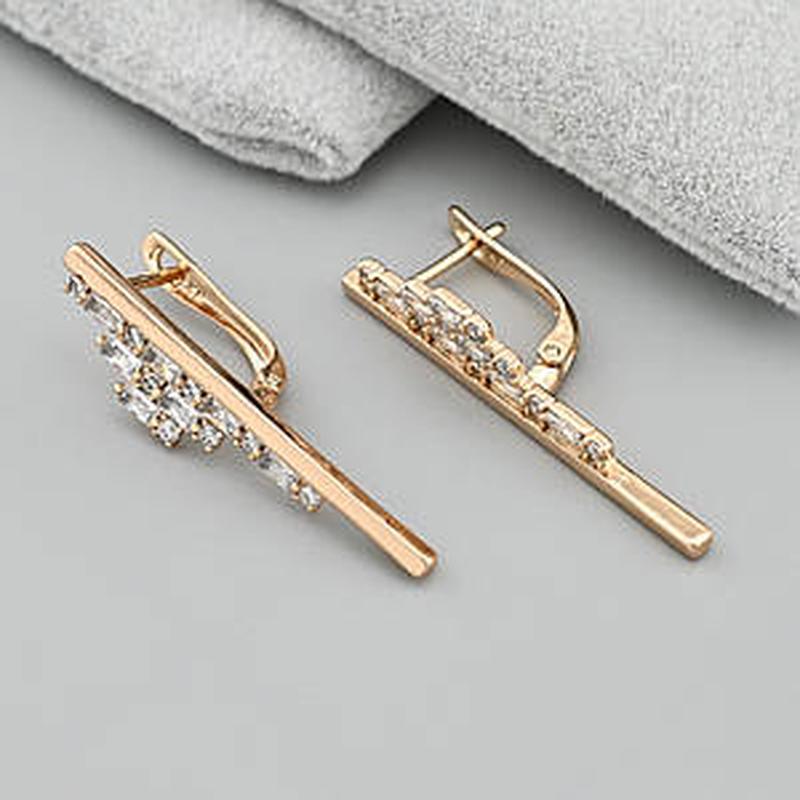 Серьги размер 32х7 мм белые фианты вес 3.6 г позолота 18К.