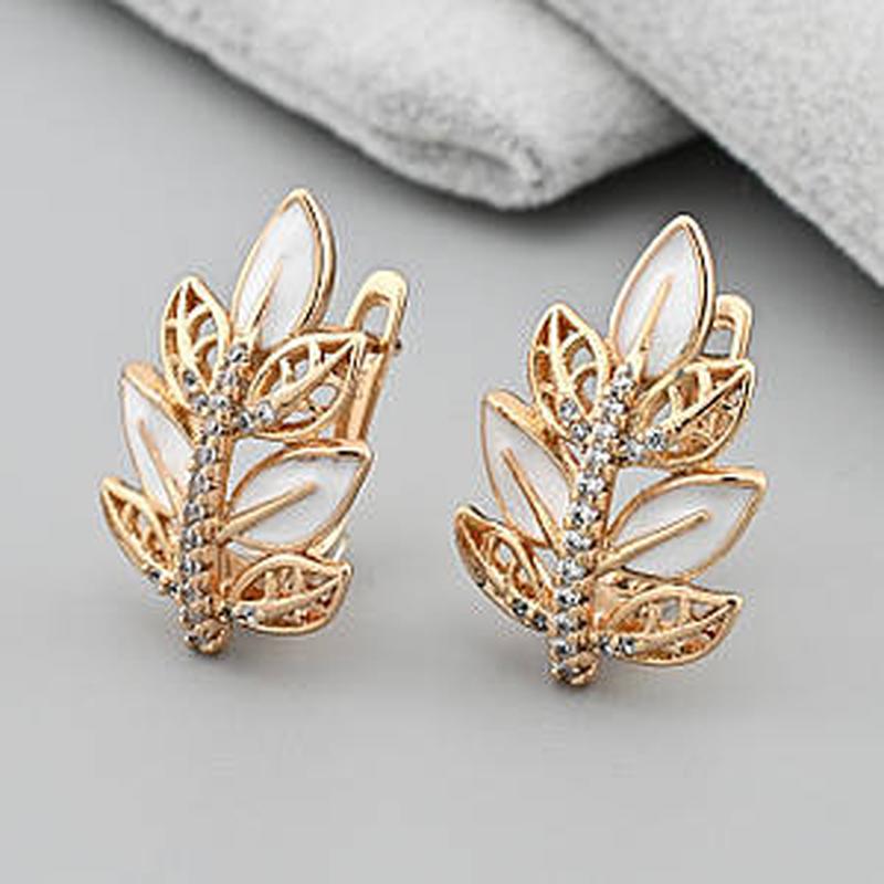 Серьги размер 22х15 мм белые фианты белая эмаль вес 4.3 г позолота 18К.