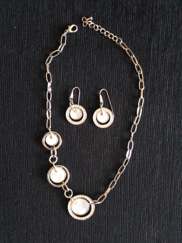 Очень нежный и элегантный комплект с перламутром. Колье ассиметричное. Серьги-подвески. Производство - Италия