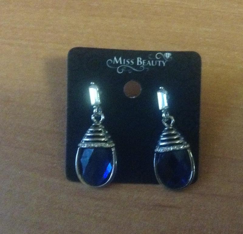 Серьги с камнем темно-синего цвета. Очень красиво смотрятся. Металл под серебро.