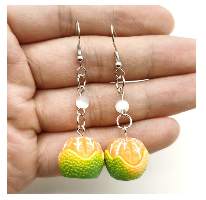 серьги акрил и бижутерный сплав мандаринка 1.5 см. х 1.5 см. длина серьги 4.5 см. Если возникнут вопросы спрашивайте, отвечу обязательно