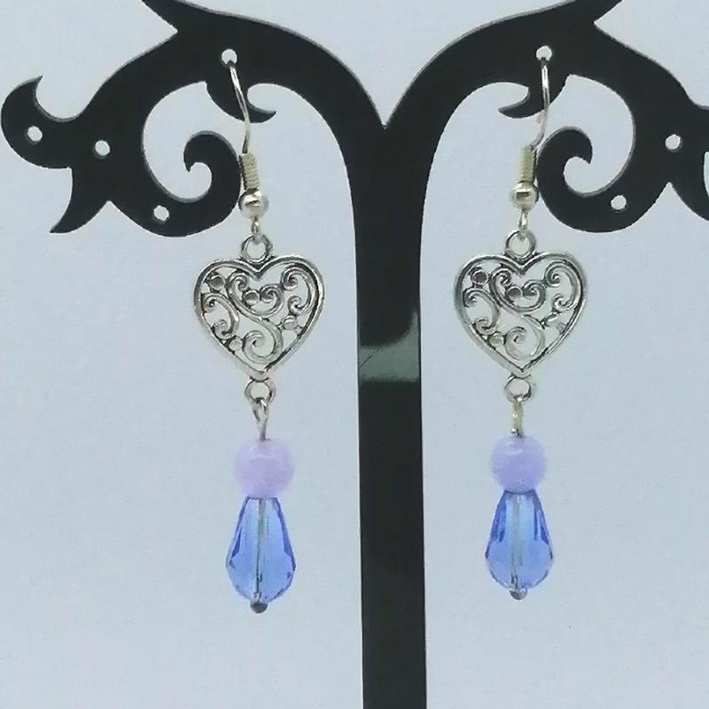 Серьги очень нежные, металлическое сердечко, нефритовая бусина и хрустальная капелька, ушко серебро.