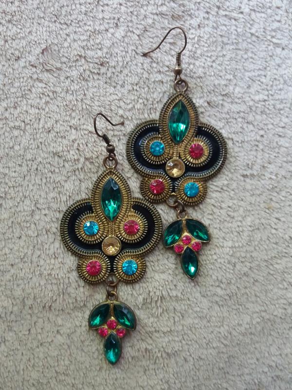 Яркие серьги. Состав: латунь, стеклянные кристаллы, эмаль. Замеры на фото. Состояние идеальное.