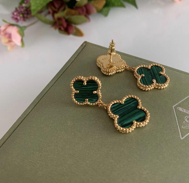 Сережки зелені vancleef ванклиф срібло дві квіточки