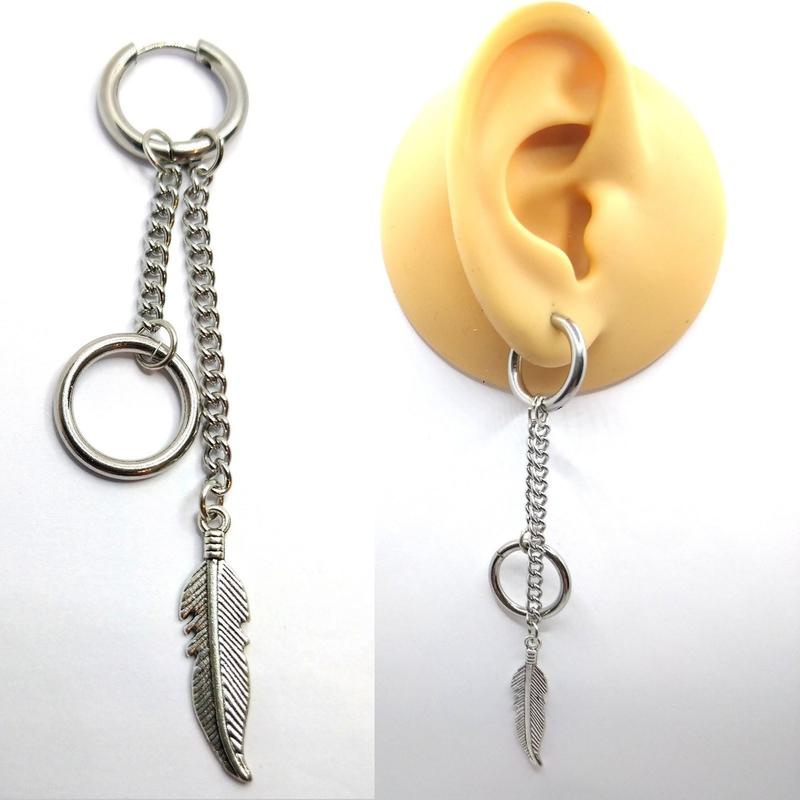 Модная длинная серьга с пером и кольцом на цепочке 1 шт. нержавеющая сталь stainless steel