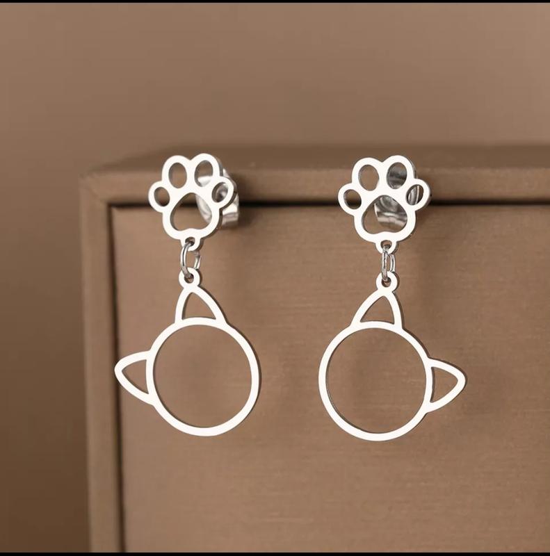 Милі сережки "Котик з лапкою" Нержавіюча сталь Розмір 3 на 1,5 см
