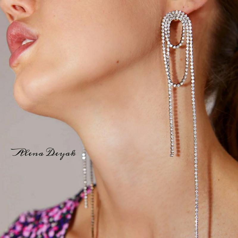 *********************************** ХОЧУ ПОРАДУВАТИ ВАС, ДОРОГІ МОЇ КРАСУНІ, АКЦІЄЮ 2+1. ПРИ ВИБОРІ 2-ох ОСНОВНИХ РЕЧЕЙ +1 РІЧ З КАТЕГОРІЇ "ПОДАРУНОК" (БЕЗКОШТОВНО) ДОДАЄТЬСЯ!!! *на Ваш вибір *********************************** Актуальна модель - оригінальні сережки, довгі вечірні спадають, рухливі. Розмір 15*1,5 см. Колір - сріблястий фініш, кристали прозорі. НОВІ. Склад: біжутерний сплав, сам гвоздик срібло з гравіюванням S925