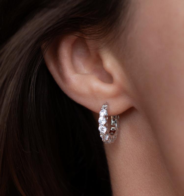 Серебряные s925 серьги круглые с камушками фианитов, серьги кольца с камнями крупные
