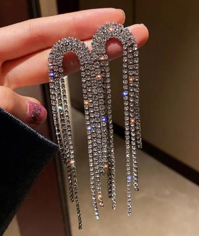 Поздравляю на моей стороне❤❤❤ В наличии вечерние серьги и другой формы.Все есть на странице. Шикарные вечерние серьги.длина-11,5см,ширина 1.7см.не тяжелые.металл серебряного цвета.