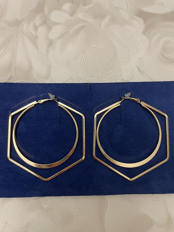 Стильные серьги в золоте Edge Accessories Ширина и высота 6.5 см На этикетке присутствует надпись «Nickel Free » , а это означает что Вы сможете носить это украшение без страха появления аллергии. Подойдут к любой одежде. Выглядят очень стильно и современно