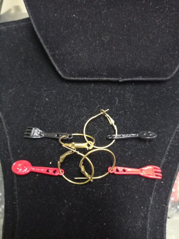 серьги ложки вилки...можно до обеда.красная черная эмаль..камешки..можно отдельно носить кольца..легкие
