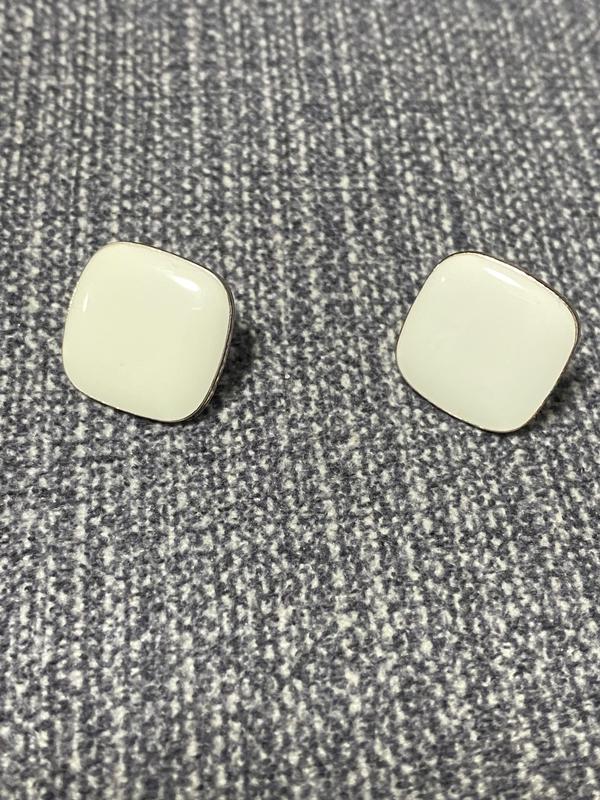 Молочные серьги эмаль белые гвозди золотые квадратные