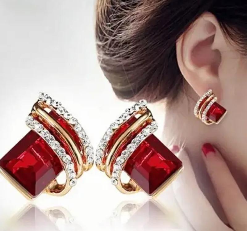 Оригинальные серьги пловушки золотистого цвета с камушками синего, красного и зеленого цветов