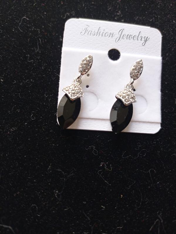 серьги с черным кристаллом..мелкими белыми камушками..желтый..белый металл..красовые.