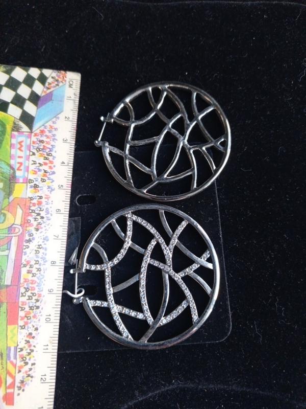 серьги кольца..с камушками.. серебристые..досит крупные..красные.
