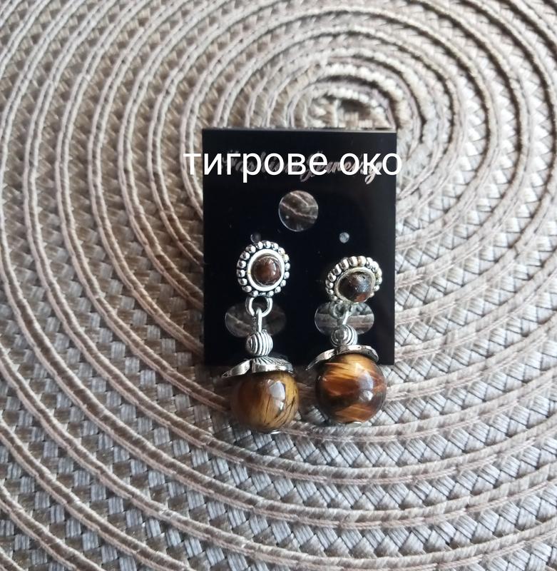 Сережки підвіски пусети з натуральним каменем тигрове око