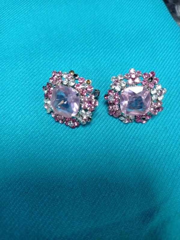 серьги красивые с розовыми камушками и кристаллами..ошатные.