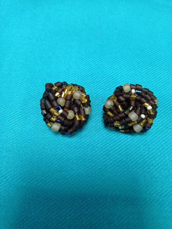 клипсы из бисера..коричневые..золотистые..легкие.под одежду.