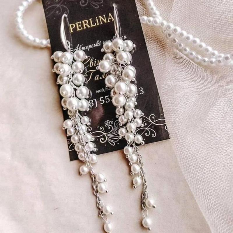 Сережки-грона ручної роботи. Використано керамічні намистини, антиалегненні швензи. Довжина сережок разом із швензами - 8см. Є в наявності. На замовлення можна виконати будь-якої довжини та кольору.