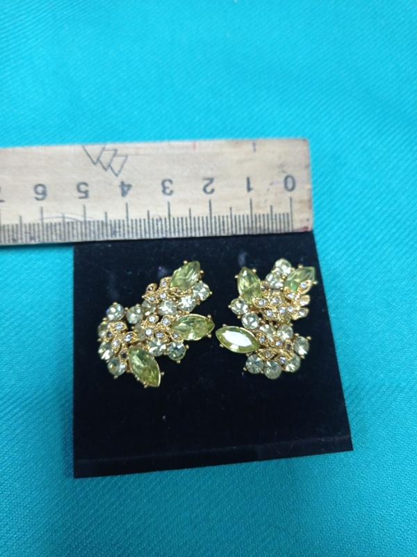 клипсы с камушками..желтый металл,.зеленые..коричневые камешки..ошатные.