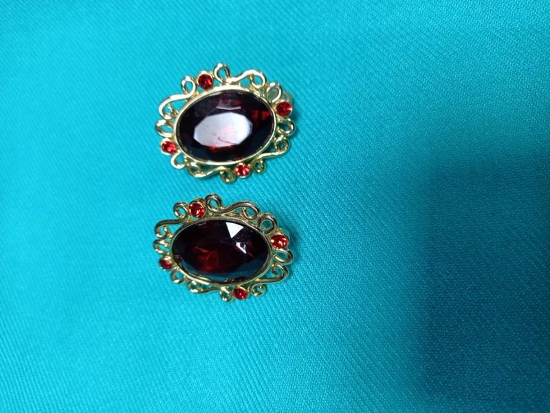 кліпси великі..з червоним камінням..великі камені..на жаль трохи подряпані..як не приглядатися то і нічого..але присутні..кому під одяг придасться.