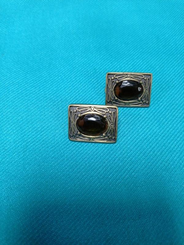 клипсы под старинную бронзу..с крупным коричневым камнем.прямоугольные.